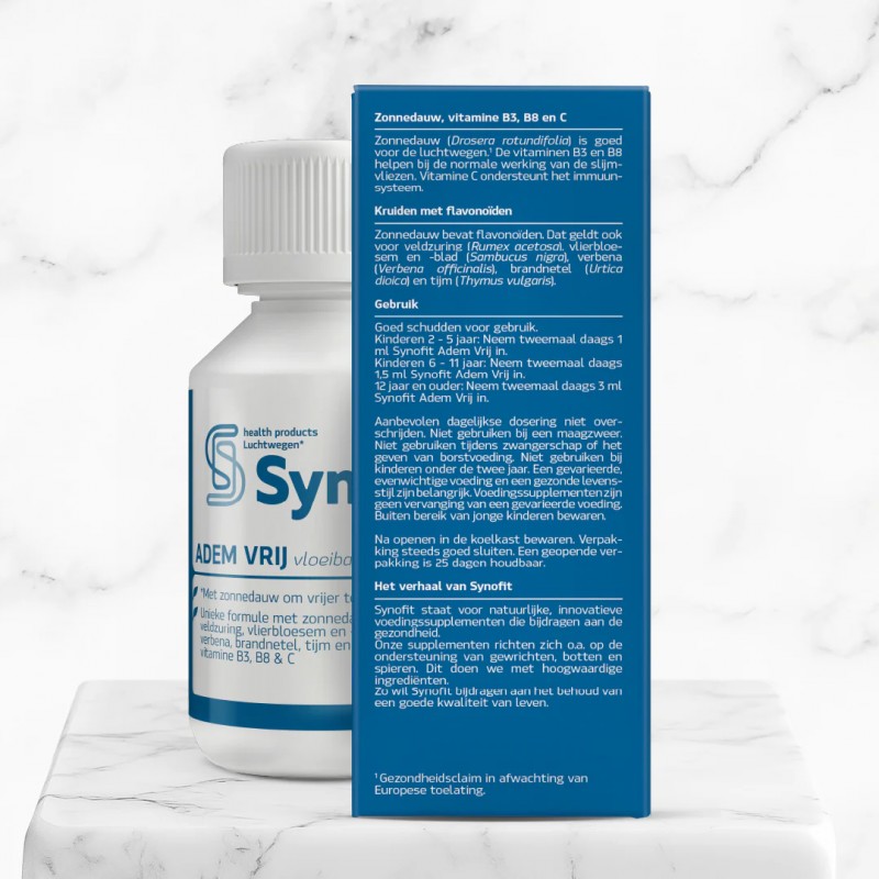 Synofit Adem Vrij is een unieke kruidendrank met zonnedauw voor de luchtwegen. 1 U kunt deze drank met het meegeleverde doseerspuitje goed doseren en met de mond innemen. Synofit Adem Vrij is niet verslavend en kan door kinderen vanaf twee jaar gebruikt worden.