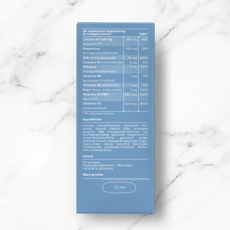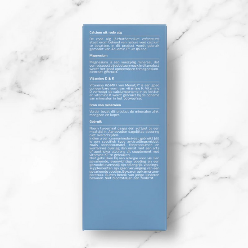 Vitamine K2-MK7 van MenaQ7® is een goed opneembare vorm van vitamine K. Vitamine D verhoogt de calciumopname in de botten en vitamine K wordt gebruikt bij de opname van mineralen in het botweefsel.