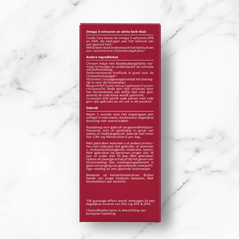 Cardio Care bevat de omega 3-vetzuren EPA en DHA, die bijdragen aan het behoud van een gezond hart.1